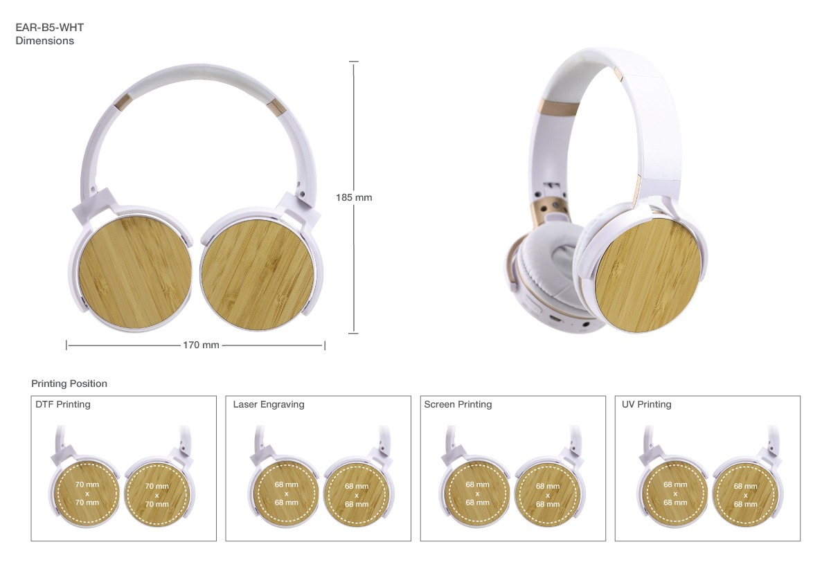 Eco-Friendly Bluetooth Headphone White color, 5.0 Ver. and with Branding options.