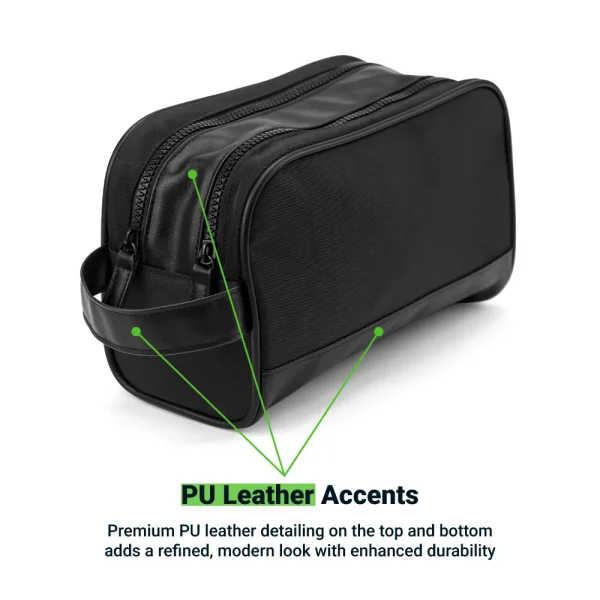 This premium Twill Fabric Utility Pouch is designed for maximum functionality and durability. Featuring a sleek PU leather side handle and two spacious main zipper compartments, it provides organized storage for travel essentials, grooming items, stationery, or tech accessories. One compartment includes an inner zipper pocket, while the other is equipped with loop slots for neatly arranging smaller items. Its sturdy build and ample space make it an ideal choice for travel, daily use, corporate gifting, and promotional branding.